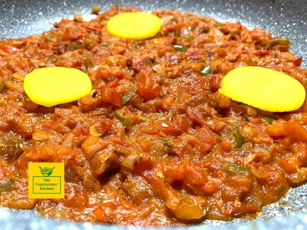 For this vegan version of Shakshuka, I have taken inspiration from the Indian pav bhaji