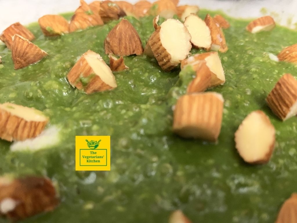 To make the spinach purée, first soak the spinach in hot water for a minute or two (this is known as blanching). Then let the spinach cool before you blend it in the blender.